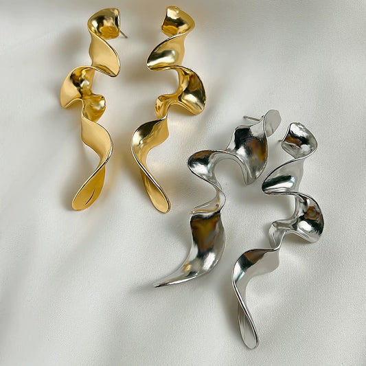 Sculptural Flow Earrings - Gold & Silver