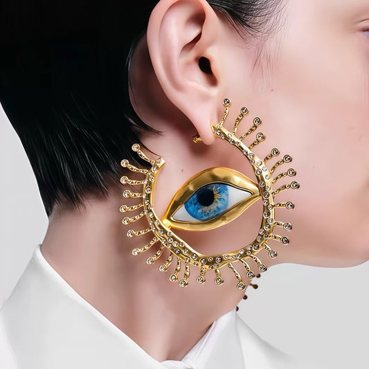 “Visionary Gaze” Earrings – Gold Eye Statement Jewelry with Crystal Lashes