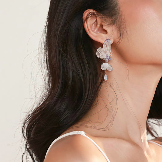 Butterfly Wings Statement Earrings – Silver & Amethyst Accents