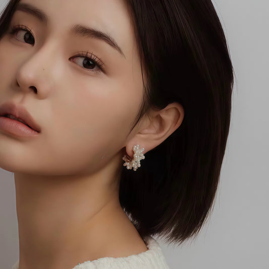 Golden Cluster Pearl Hoop Earrings – Elegant Statement Jewelry