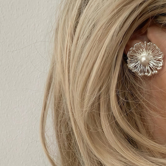 Silver Bloom Pearl Earrings