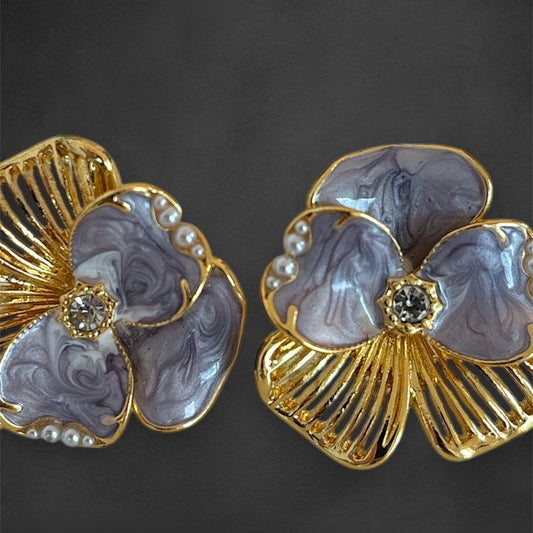 Gold & Lilac Orchid Earrings