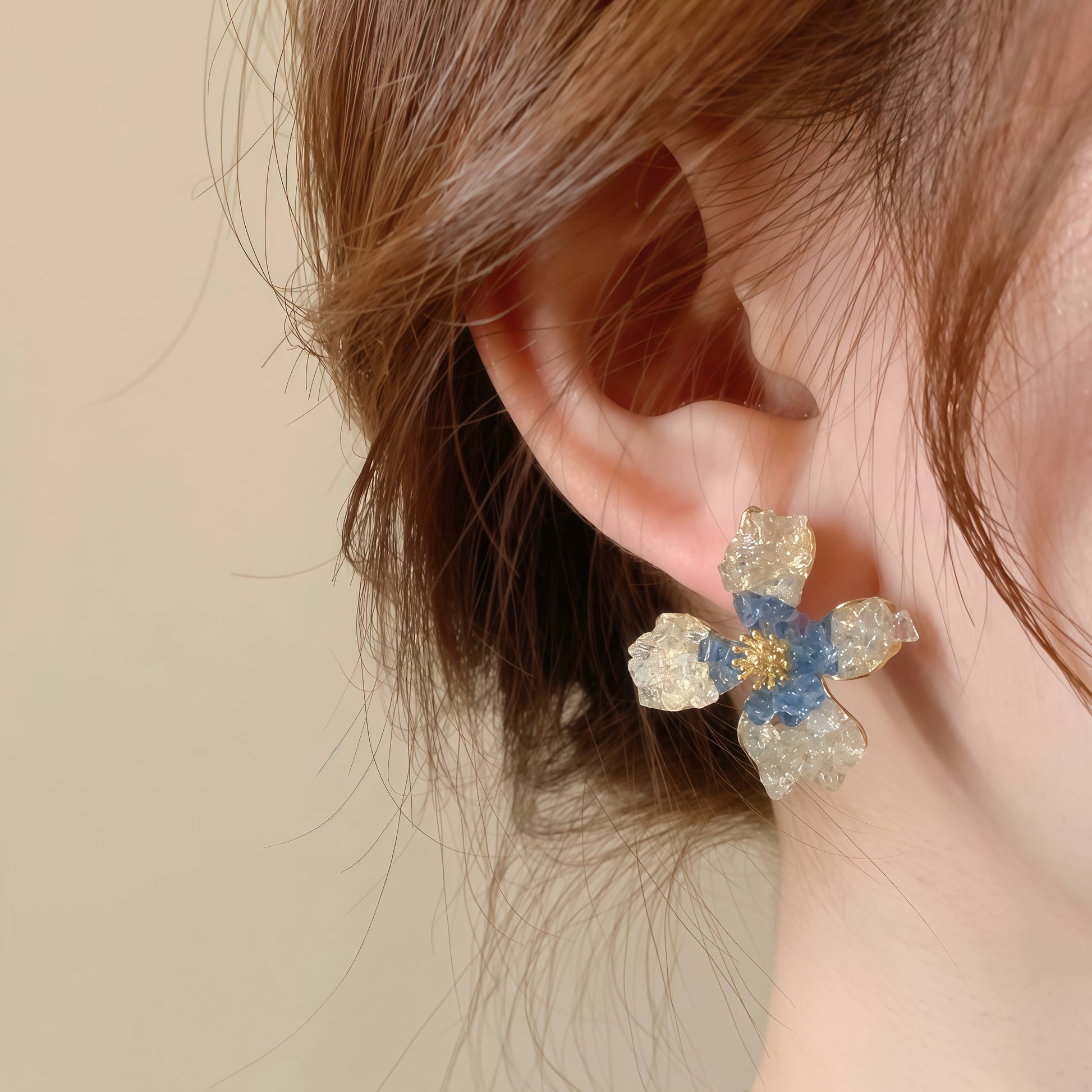 Disse øreringe er håndlavede, så de ligner naturens fine blomster, og de er lette, men alligevel iøjnefaldende – ideelle til bryllupper, havefester eller for at tilføje et strejf af elegance til dit hverdagslook.