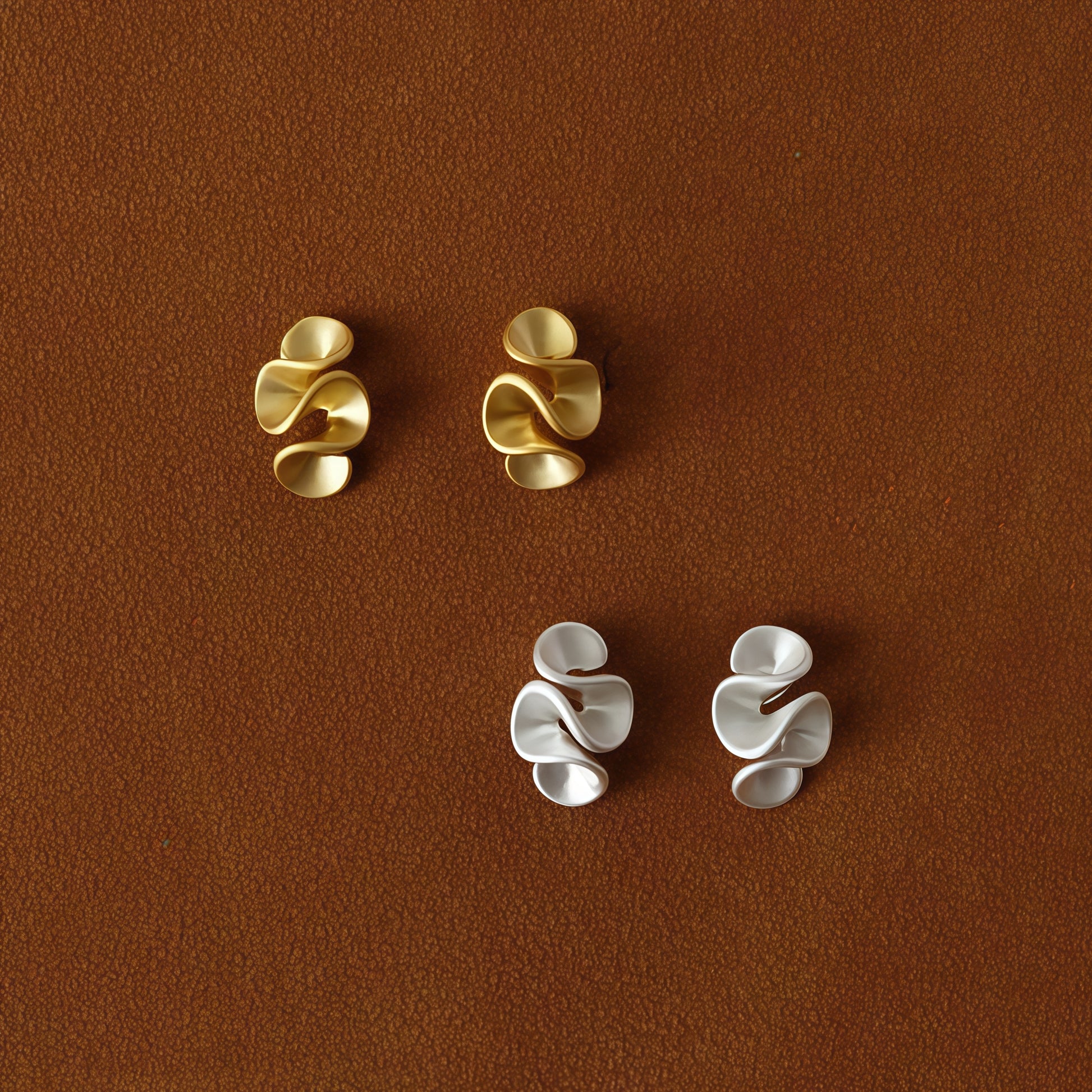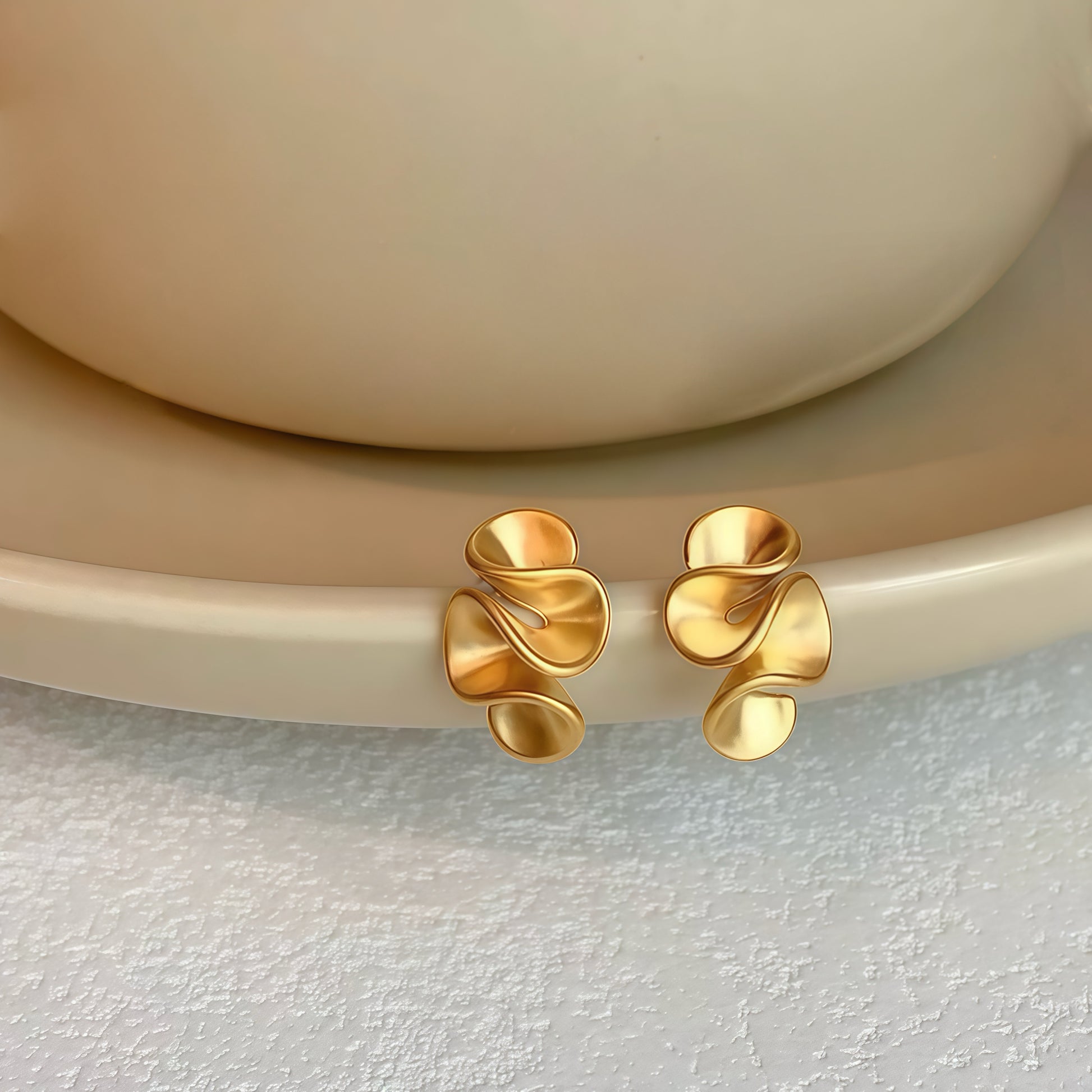 Soft curves, fluid lines, and sculptural elegance — the Cream Blossom Earrings are designed to capture the delicate beauty of a flower sculpted in cream. Available in matte gold and matte silver finishes, their organic form mirrors petals gently unfolding, creating a look that is both artistic and timeless. Their flowing, organic curves mimic delicate petals caught in motion, creating a harmonious balance of softness and strength.
