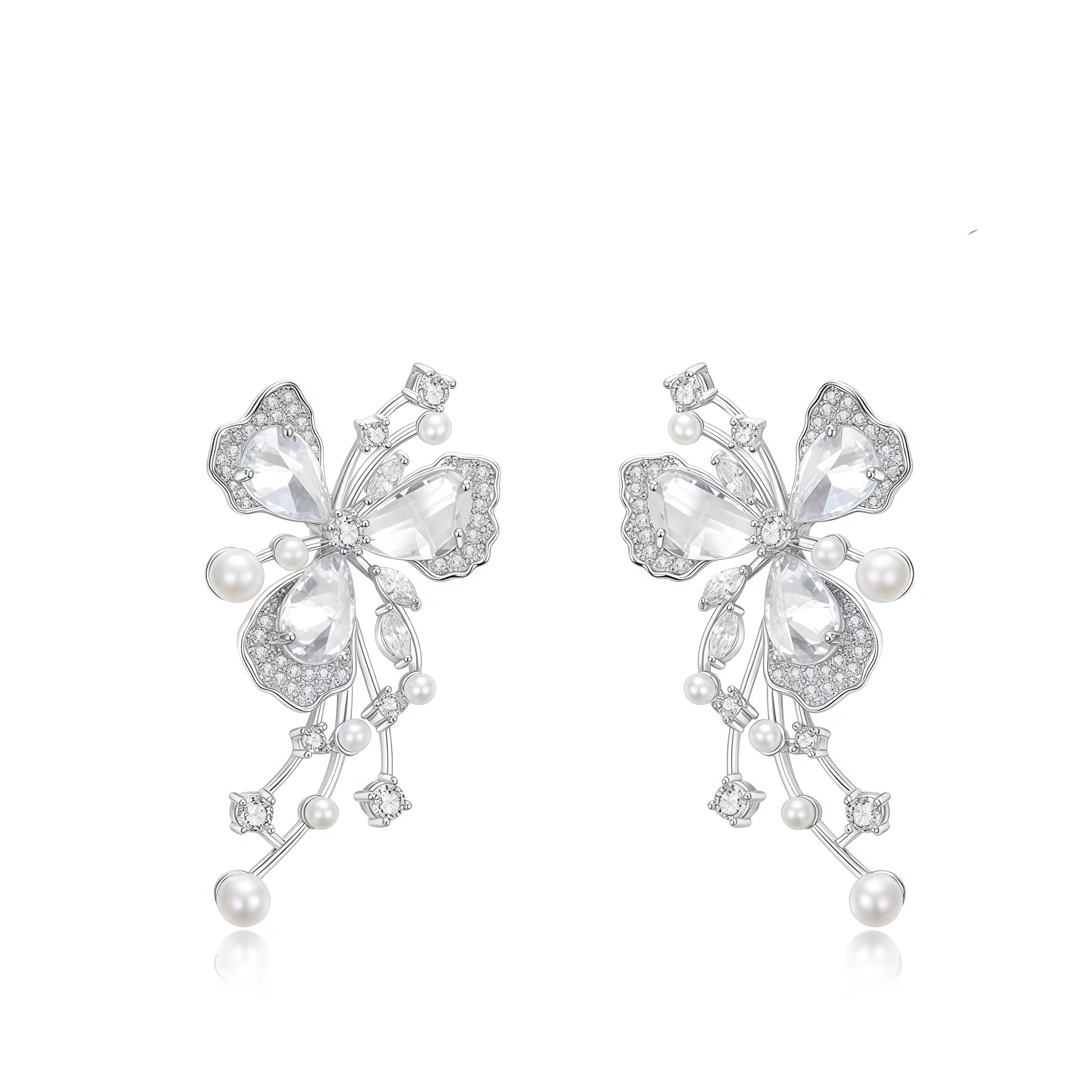 Let your elegance blossom with the Crystal Bloom Earrings — an artistic fusion of light and grace. Designed as a blooming flower captured in motion, each petal is set with sparkling zircon crystals and delicate pearls, reflecting the gentle rhythm of nature.