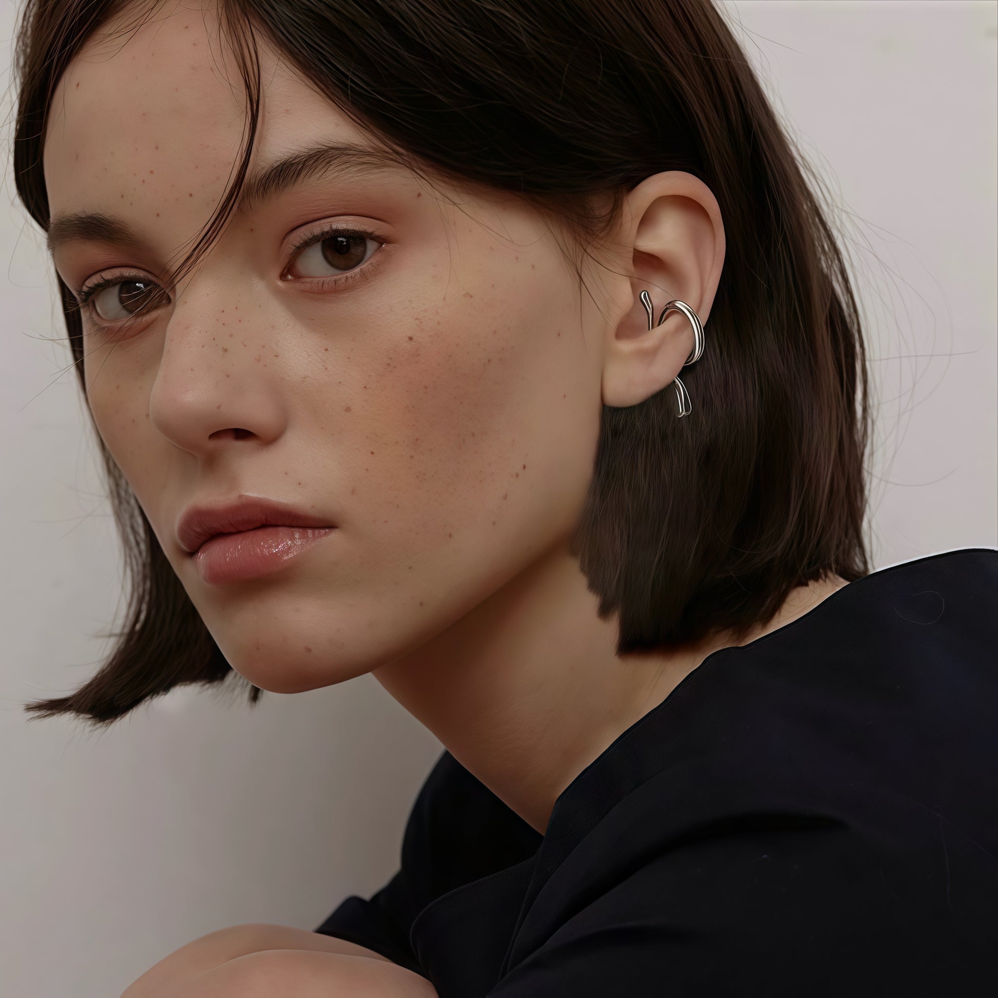 Crafted for those who seek elegance beyond convention, this piece can be worn alone for a refined statement or layered for an artistic, asymmetrical look. No piercing required — just a gentle touch and a graceful twist to secure it in place.