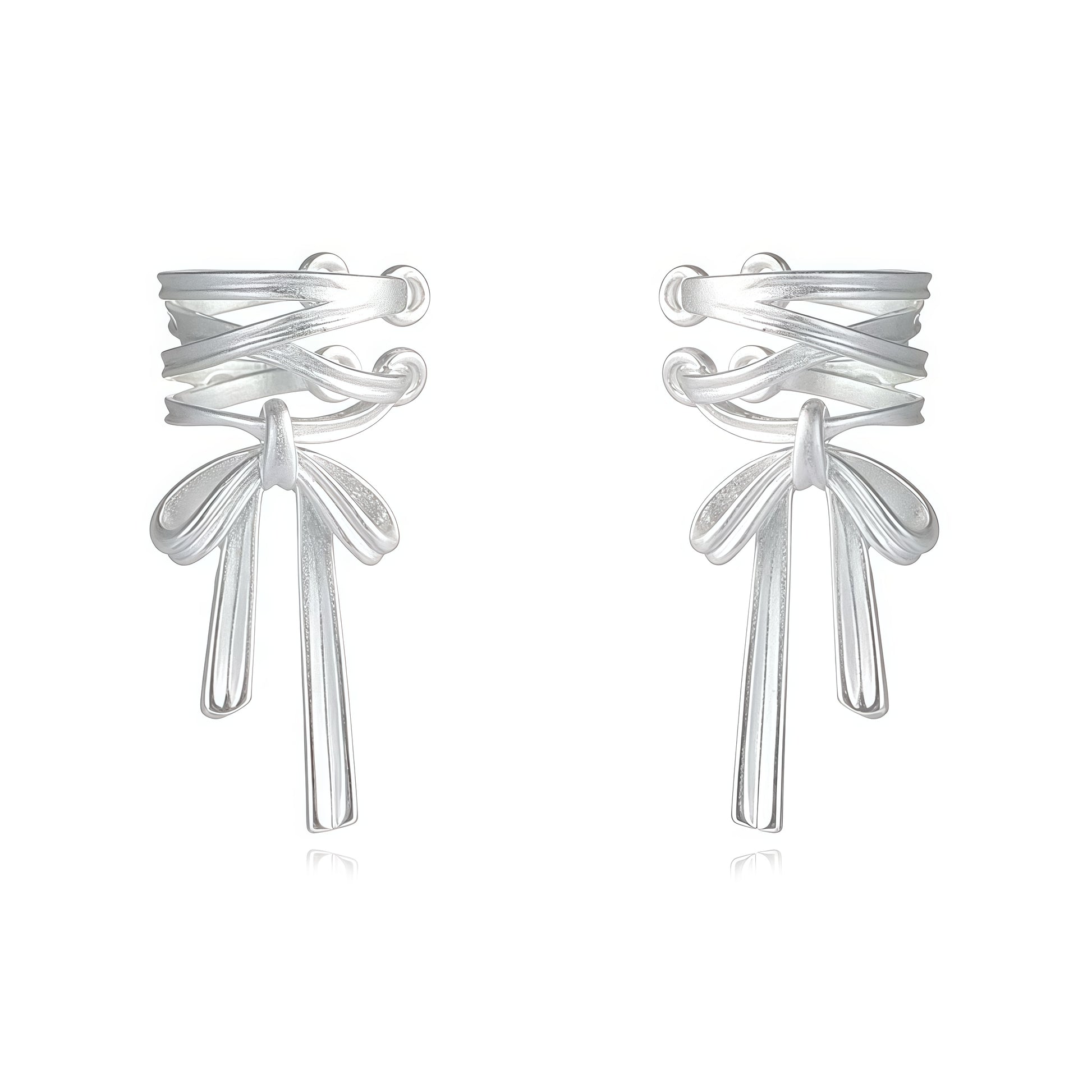Delicate yet bold, the Silver Ribbon Ear Cuff captures the beauty of movement frozen in time. Designed as flowing ribbons that softly wrap around your ear, this sculptural piece evokes both strength and femininity — like a knot that ties elegance and individuality together.