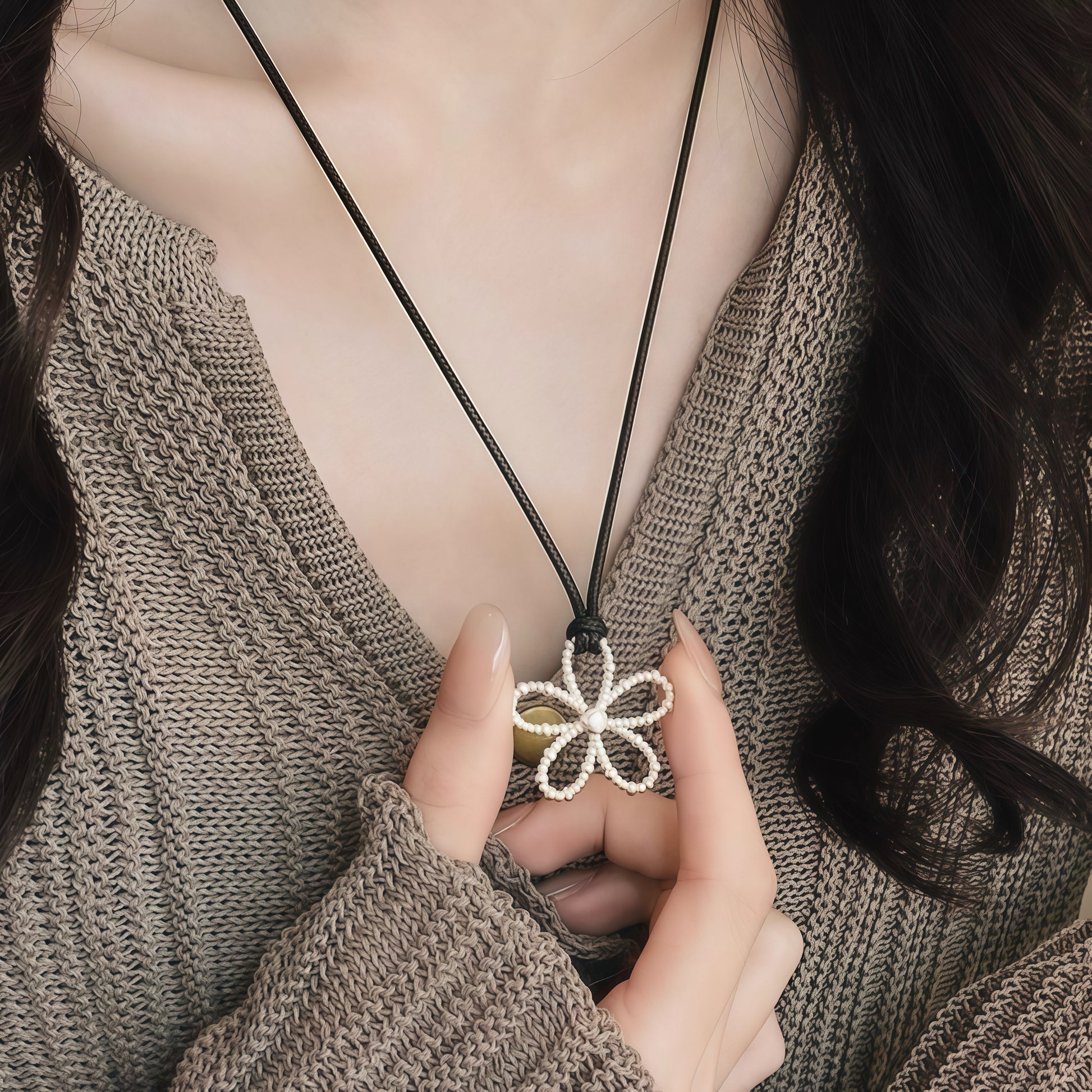 Detta halsband, som hänger i ett justerbart svart snöre, blandar minimalistisk charm med en bohemisk touch, vilket gör det till den perfekta accessoaren att bära både på lager och solo. Lätt och mångsidig, perfekt för vardagskläder, helgäventyr eller för att ge en lekfull twist till en elegant kvällslook.