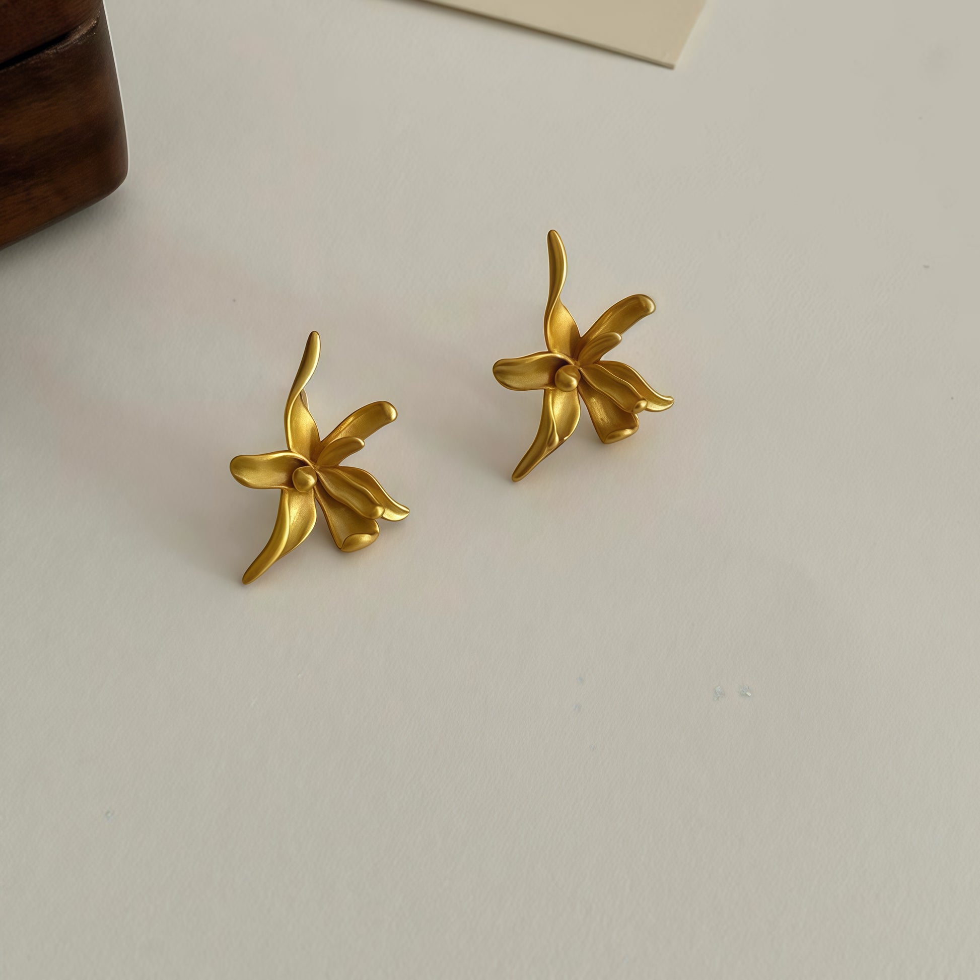 Iris Flow Örhängen – Skulpturell Elegans i Blommor