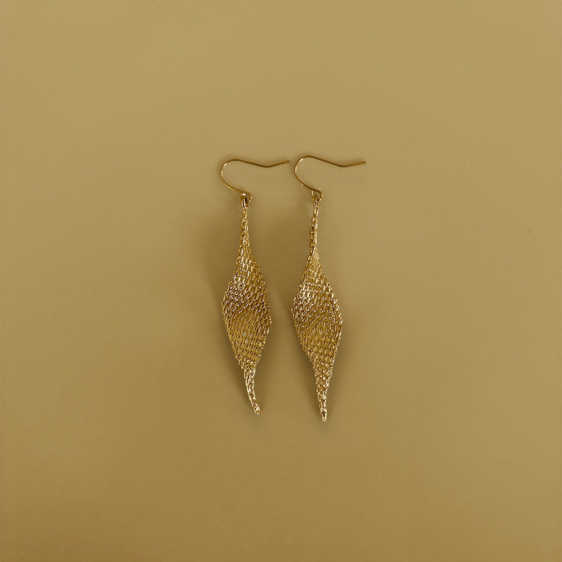 Graciösa, flytande och fulla av rörelse – våra Wave Mesh-örhängen är en hyllning till bärbar konst. Dessa eleganta droppörhängen är tillverkade av ultralätta vävda metalltrådar, tvinnade till en skulptural silhuett som efterliknar vattenflödet eller ett fladdrande löv.
