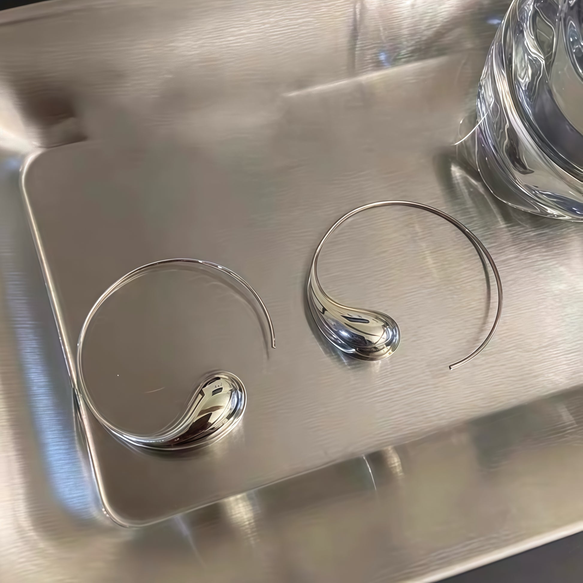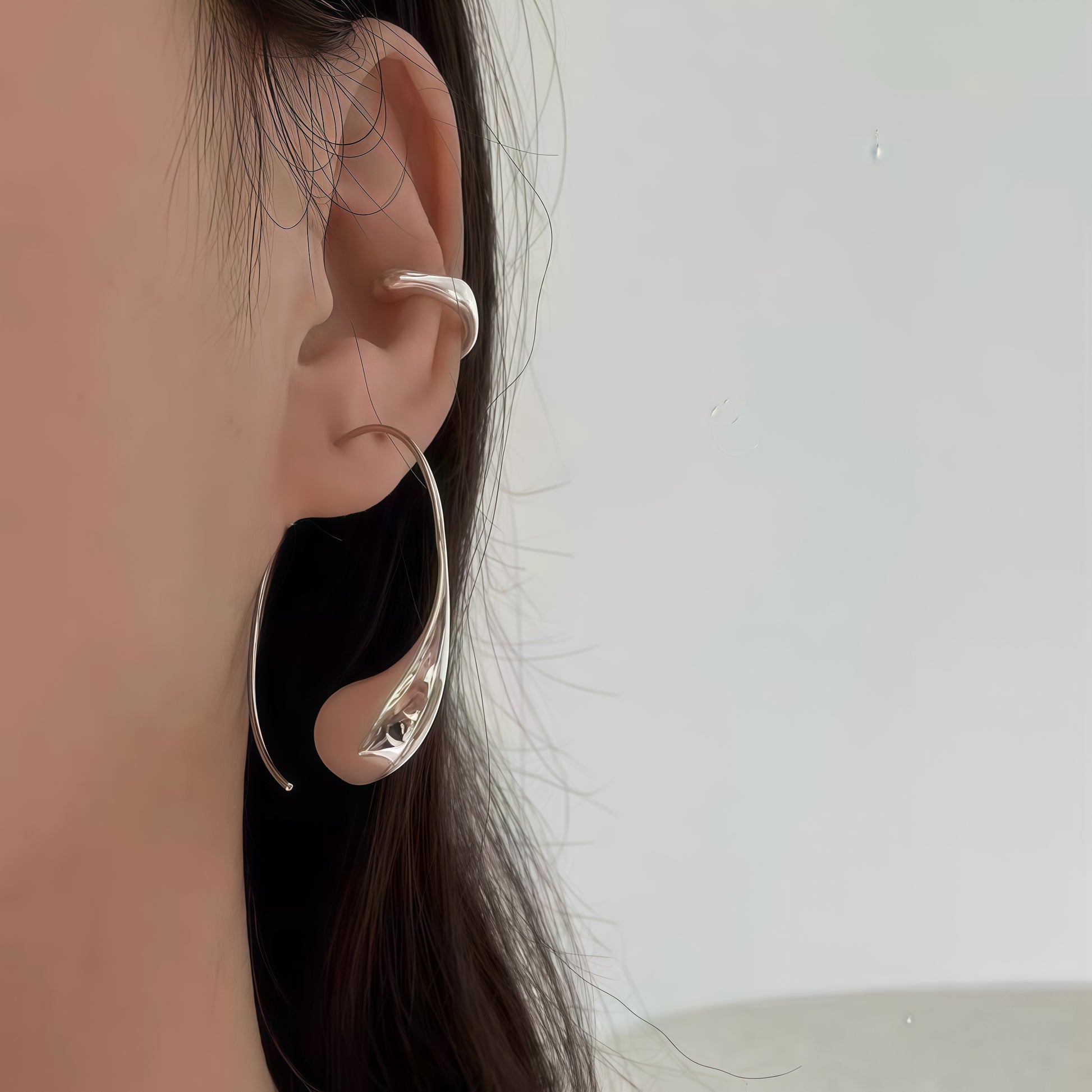 Likt en droppe silver som fryst i rörelse, fångar Liquid Arc-örhängena den tysta poesin av rörelse och form. Skulpterade i en flytande kurva, omsluter varje örhänge örat med en enkel elegans – djärv men viktlös, modern men tidlös.