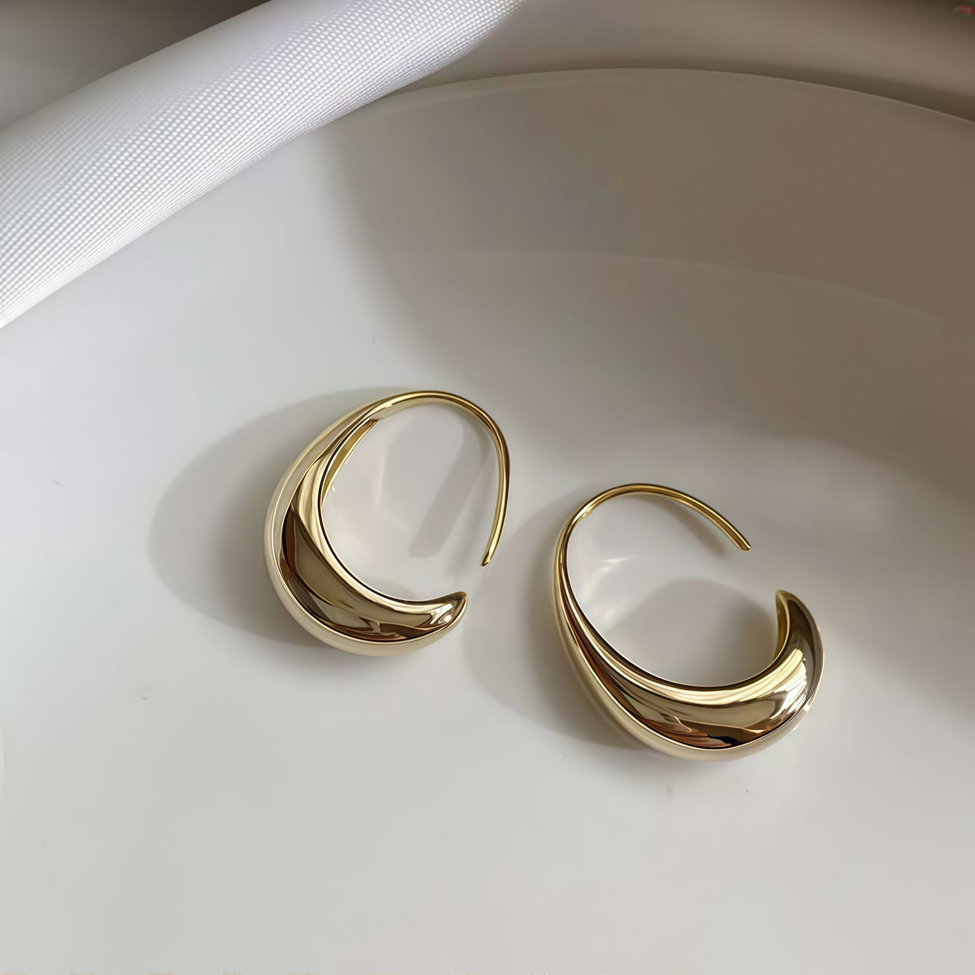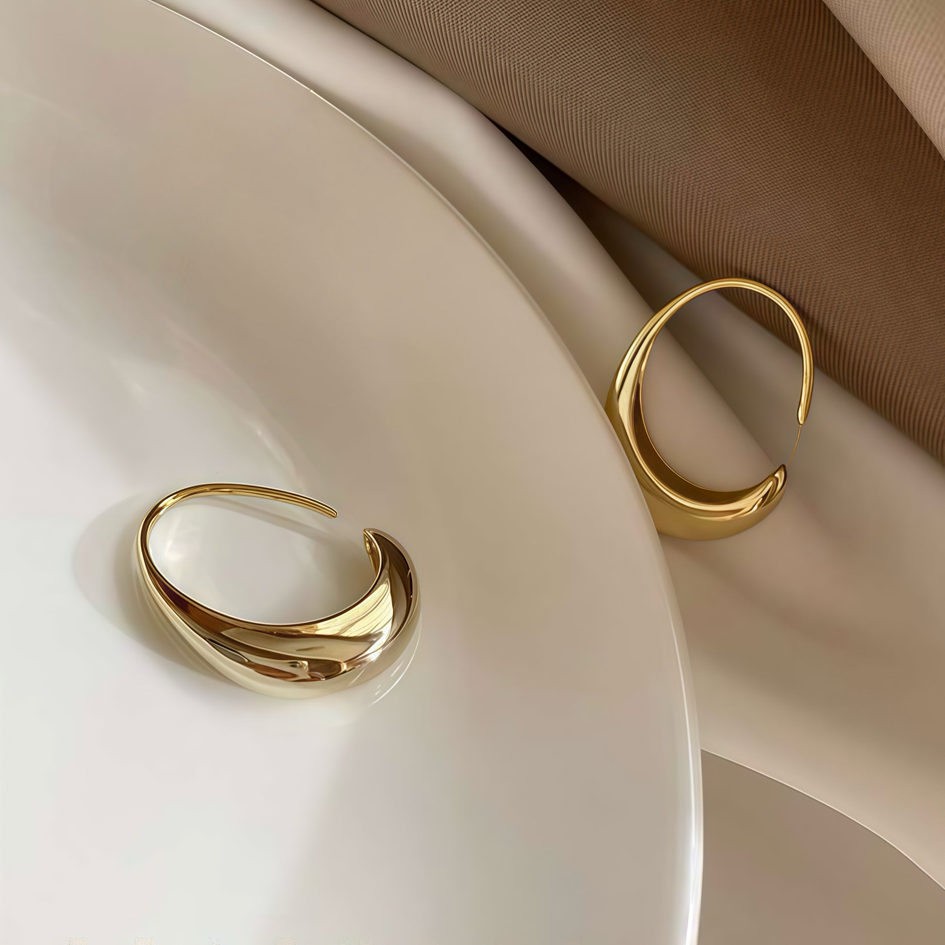 Crafted in high-quality brass and plated in either sterling silver or 14k gold, these earrings bring a soft yet powerful presence to any look. Their open hoop design makes them both lightweight and easy to wear, perfect for elevating your everyday wardrobe or adding a sleek finishing touch to an evening ensemble.